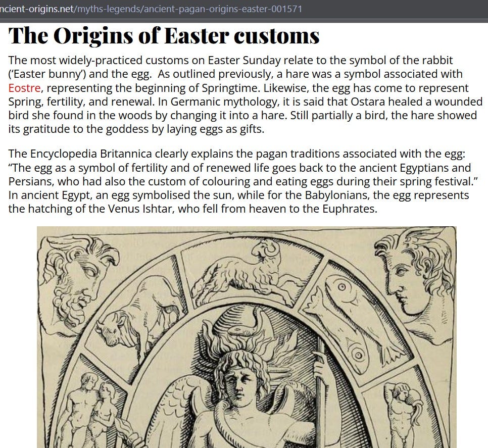 Not surprisingly this celebration actually landed on my birthday, March 21st. The spring equinox. I was also born during the 4-hour cusp between Pisces and Aries. My Masonic grandfather declared me to be his favorite grandchild when I was born. I was born in the Matrix at a very specific time. I was an initiate into the Masonic cult for a time, but that is another story. This just ties into Ishtar day which is why I mention it. They do love their pagan holly-days.